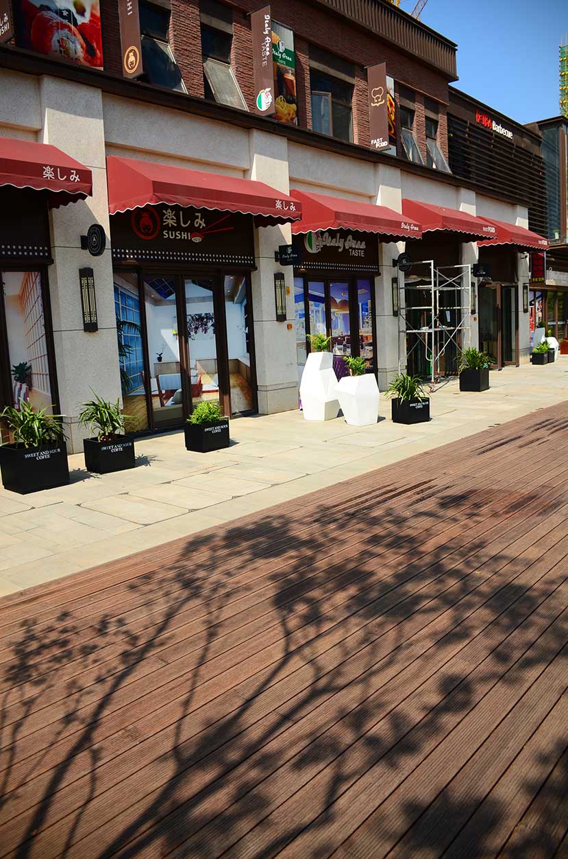 南昌萬科金域國際位于南昌經開區(qū)雙港西大街,是萬科地產布局南昌的重點項目,該項目是南昌首屈一指的低密、人文、宜居的學院派主題風格社區(qū)。 南昌萬科金域國際項目的社區(qū)風情廣場使用桃花江戶外防腐竹地板結合原生石材作為地面鋪裝,強化人與環(huán)境的自然統(tǒng)一,靈動的流水景觀與學院派風格的建筑完美結合,漫步其中仿佛置身于歐洲某個寧靜的古老小鎮(zhèn)。