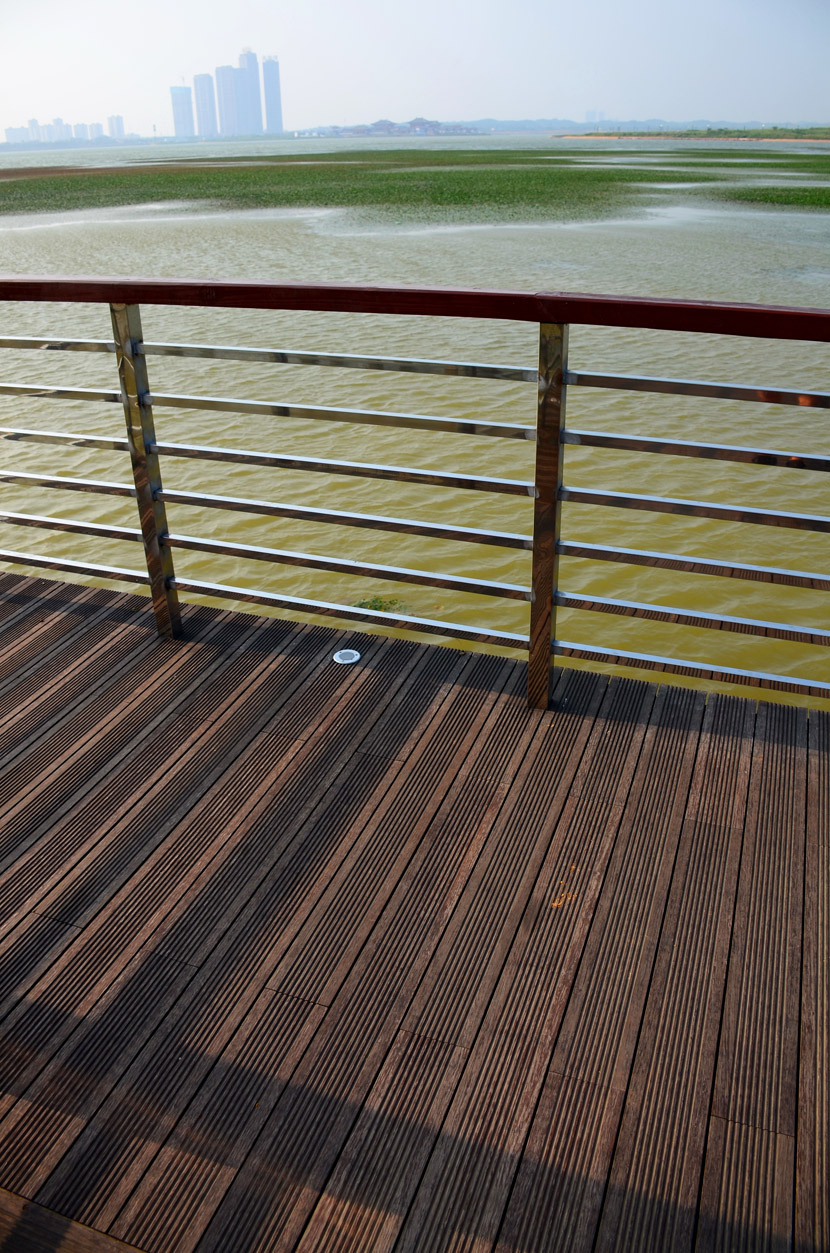 松雅湖國家濕地公園位于長沙星沙,是集防洪調(diào)蓄、城市安全飲水、改善城市生態(tài)環(huán)境、完善城市功能配套布局、提升城市生活品位于一體的綜合性工程。 松雅湖生態(tài)公園總占地面積489.62公頃,合7 344.3畝。位于長沙縣北部,北至撈刀河,南至濱湖路,東至東六線(北段)和東八線(南段),西至松雅河,通過澳大利亞GHD公司的規(guī)劃設計,擬以松雅湖為核心,建成一個以湖光山色、自然生態(tài)為基礎的,集休閑、旅游、娛樂、健身、水上活動等功能于一體的綜合性公園。 松雅湖濕地公園全方位使用桃花江竹材科技生產(chǎn)的戶外高炭防腐環(huán)保竹材。