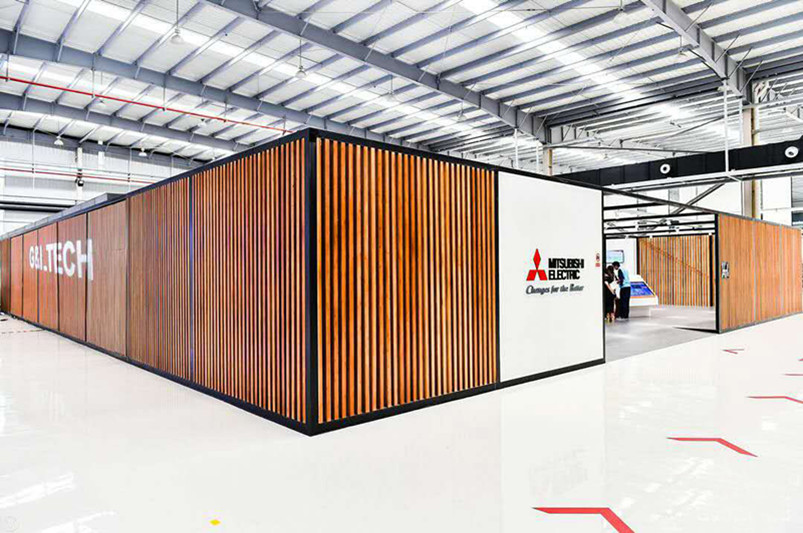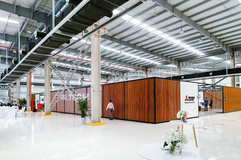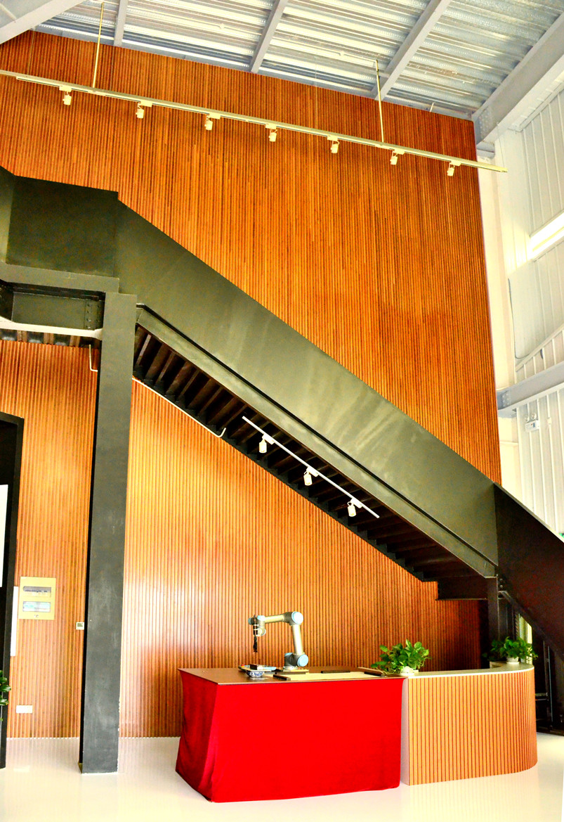 菱創(chuàng)智能是一家集設(shè)計(jì)、研發(fā)、生產(chǎn)制造、銷售和服務(wù)為一體的創(chuàng)新驅(qū)動型企業(yè)。其辦公區(qū)的裝飾采用桃花江的室內(nèi)裝飾竹材。工業(yè)化的現(xiàn)代廠房與清新脫俗的傳統(tǒng)竹材形成強(qiáng)烈對比,為端莊嚴(yán)肅的工業(yè)廠房增添了一絲柔美與和諧。竹格柵的設(shè)計(jì)顯得整個(gè)空間通透又有層次感,既不失現(xiàn)代工業(yè)的科技感,又保留傳統(tǒng)文化的美感。