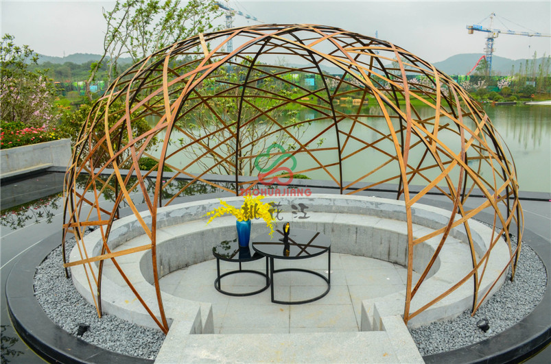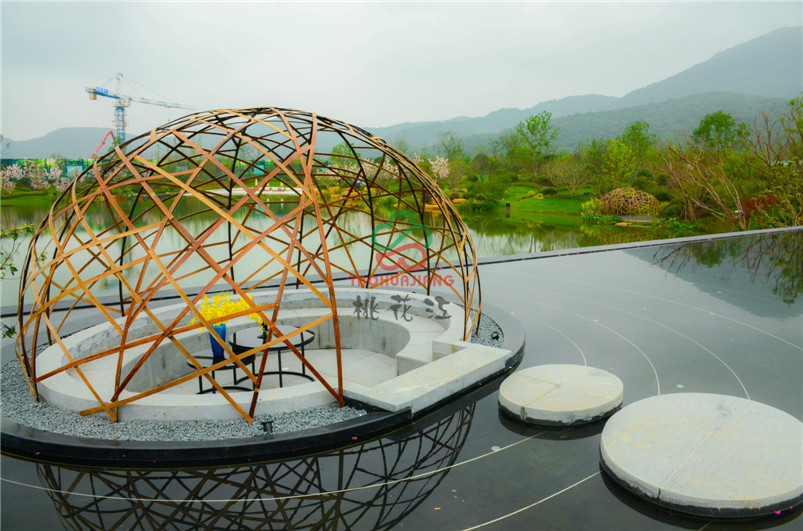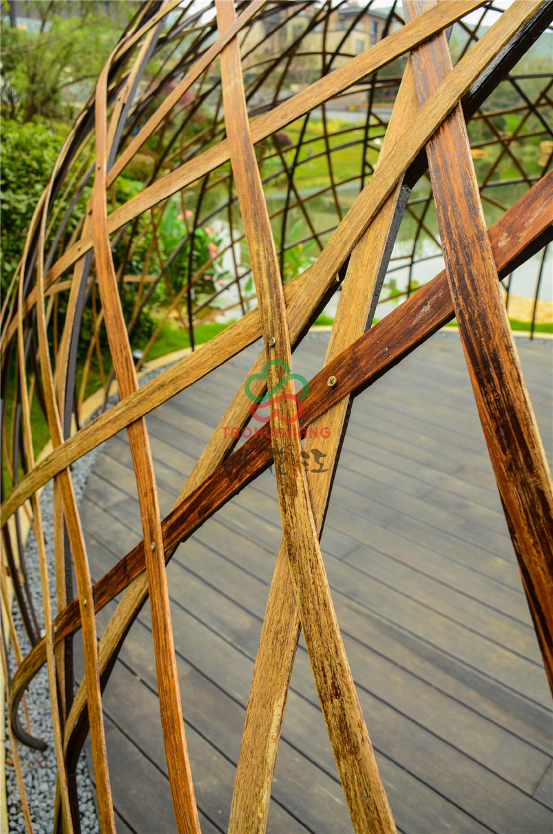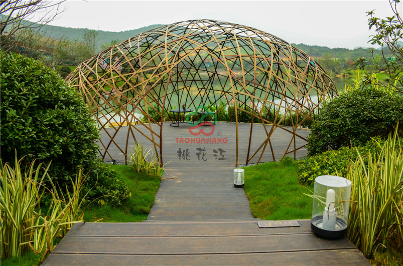 新城源山是南京新城在4A級景區(qū)-寶華山國家森林公園北門以東打造的山居純墅作品,項目內(nèi)的綠化景觀道路鋪設(shè)了桃花江竹材科技的戶外高耐防腐竹地板,最值一提的是景觀湖中央及周邊的球形設(shè)計,材料均是由桃花江竹材科技的碳化竹片編制成而成,頗具時尚藝術(shù)氣息,寧可食無肉,不可居無竹,竹材的加入更加浸潤著山水韻致與佛家禪意,仿若身處仙境,更寄托著現(xiàn)代都市人山湖情結(jié)的悠哉生活方式。