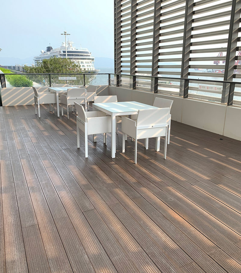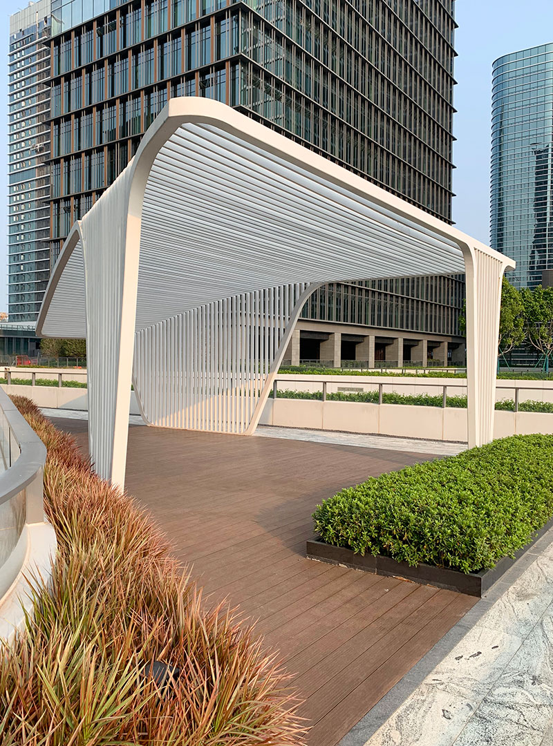 招商·深圳蛇口太子灣項(xiàng)目位于中國(guó)深圳蛇口自貿(mào)區(qū),立足深圳海上門戶——郵輪母港,占據(jù)深港中軸,擁有頂級(jí)的山海資源和海、陸、空、軌多方立體交通配套以及很好的市政、商業(yè)等配套資源。項(xiàng)目由頂級(jí)設(shè)計(jì)團(tuán)隊(duì)—SED新西林景觀設(shè)計(jì)定制,以“山、林、?!睘榫坝^設(shè)計(jì)主題,將前衛(wèi)的綠色設(shè)計(jì)、可持續(xù)發(fā)展思維帶到人們?nèi)粘<稗k公生活中,鼓勵(lì)人們多與大自然作出更緊密的對(duì)話。在室內(nèi)外的選材方面特別講究,既符合現(xiàn)代簡(jiǎn)潔的設(shè)計(jì)風(fēng)格,又能體現(xiàn)清新自然的藝術(shù)氛圍,給人舒服安適的居住體驗(yàn)。 桃花江竹材的戶外竹材由合理采伐不破壞生態(tài)的竹子材料加工而成,加工過程不污染環(huán)境,廢棄后可自然降解,恰好契合了綠色環(huán)保、可持續(xù)發(fā)展理念,因此在項(xiàng)目中得到了很好的應(yīng)用,如屋頂花園的竹木地板、竹木休閑座椅,觀景臺(tái)、親水平臺(tái)等,與周邊的場(chǎng)景融合,打造出宜居、宜業(yè)、宜商、宜游的國(guó)際濱海城區(qū)環(huán)境。照片拍攝于項(xiàng)目完工一年半后。