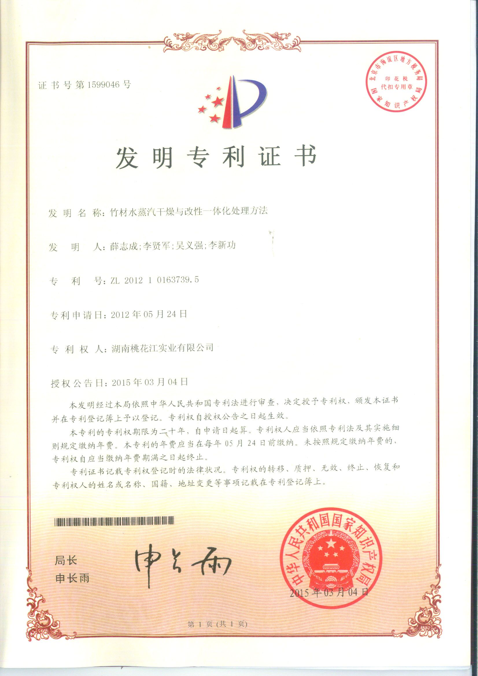 2006年,桃花江經(jīng)過多年研究,逐漸掌握了通過增加竹子的密度,同時(shí)經(jīng)過炭化和防腐的新型竹材加工技術(shù),成功解決了竹制材料不能廣泛運(yùn)用于戶外的世界性難題,獲得了竹制材料研究方面的巨大的突破。該項(xiàng)技術(shù)完美的解決了竹材戶外運(yùn)用上的防腐性、耐磨性和穩(wěn)定性問題。這種技術(shù)被稱為“高炭防腐技術(shù)”,2006年這項(xiàng)技術(shù)已經(jīng)申請(qǐng)發(fā)明專利,是我國戶外竹材研究領(lǐng)域的首個(gè)個(gè)發(fā)明專利,故桃花江竹材科技被譽(yù)為是我國竹材領(lǐng)域“高炭防腐的發(fā)明者”。此后桃花江竹材科技進(jìn)行了大量的相關(guān)的實(shí)驗(yàn)室檢測和實(shí)際測試,結(jié)果證明,高炭防腐技術(shù)是目前唯一可以讓竹子戶外應(yīng)用的解決辦法。未經(jīng)處理過的竹子,耐久性等級(jí)為5級(jí)(EN350標(biāo)準(zhǔn)),耐久性不夠。經(jīng)過熱高炭防腐技術(shù)處理后的竹子,尺寸可進(jìn)行定制,材料穩(wěn)定性提高了50%左右。耐久性也從原來的5級(jí)提高到最高等級(jí)1級(jí)(EN350-1標(biāo)準(zhǔn)1級(jí),ENV807標(biāo)準(zhǔn)1級(jí),EN113標(biāo)準(zhǔn)1級(jí))經(jīng)過熱處理的竹子同時(shí)可以有效地抵抗淺表真菌。(EN152標(biāo)準(zhǔn)0級(jí))桃花江高炭防腐戶外地板,使用風(fēng)險(xiǎn)等級(jí)達(dá)到4級(jí)(標(biāo)準(zhǔn)EN335)是市場上唯一達(dá)到此標(biāo)準(zhǔn)的竹產(chǎn)品。