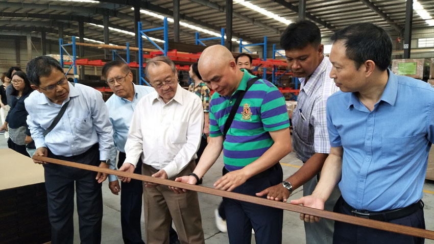 索枚先生一行在桃花江竹材科技的生產(chǎn)車(chē)間,詳細(xì)了解公司重組竹材的生產(chǎn)、銷(xiāo)售情況,得知我司的高炭防腐竹材的高科技和高性能后,索枚感嘆到“沒(méi)想到竹業(yè)在你們這里做得非常好,也讓我們學(xué)到了很多東西;我們將學(xué)到的帶到泰國(guó)去發(fā)展,推動(dòng)我們國(guó)家竹產(chǎn)業(yè)的發(fā)展。”